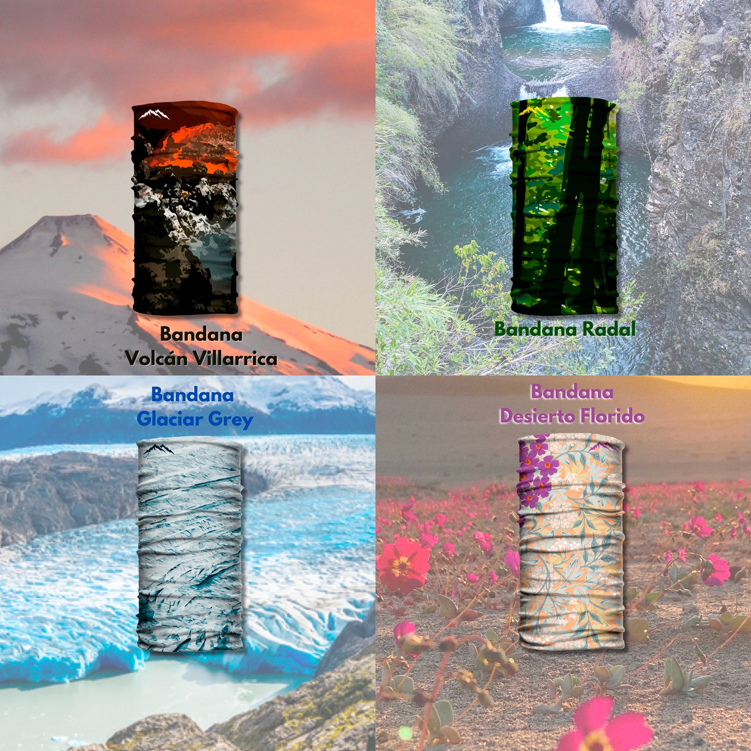 Explora con estilo y protección. Bandanas inspiradas en paisajes chilenos, con filtro UV SPF 40, microfibra respirable y diseño versátil sin costuras. Ideal para cualquier aventura outdoor. 🇨🇱